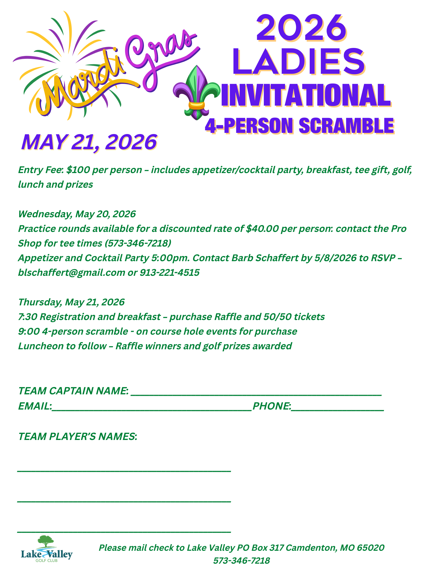 Lake Valley Ladies Invitational May 21st. This event is sold out.